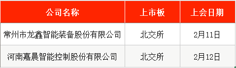 2月12日,北交所将审议河南嘉晨智能控制股份有限公司(下称“嘉晨智能”)的首发事项。公司主营业务为车辆智能驱动控制系统的研发、生产和销售,主要产品目前已广泛应用于工业车辆,并在高空作业平台、挖掘机等工程机械、工业机器人和场地车等领域实现应用。