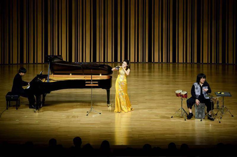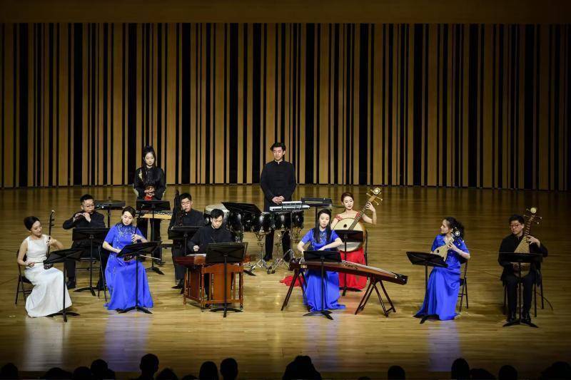 在第七届金钟奖民族管乐比赛金奖获得者张倩渊演绎的唢呐、钢琴与打击乐合奏《恣逸》中,音乐会正式拉开序幕。随后,第十五届金钟奖古筝比赛第一名倪一鸣带来古筝独奏《远云I》,以空灵悠远的意境带领观众进入深邃的音乐世界;第十二届金钟奖二胡比赛第一名高白呈现其本人作曲的《草原诗篇》;第十五届金钟奖民族弹拨乐比赛柳琴第一名刘世佳演绎的《赤壁》,以柳琴独特的音色重塑历史壮怀;第十五届金钟奖民族弹拨乐比赛中阮第一名薛淼带来其本人作曲的《祝融》,与大提琴、打击乐进行跨界对话,探索民族室内乐的新可能。音乐会上半场在竹笛演奏家王华演绎的经典改编作品《幽兰逢春》中结束。