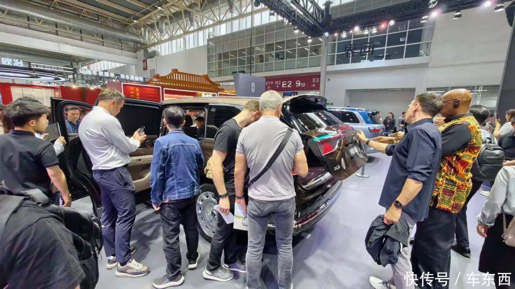 相比车展上的其他大三排SUV新车,这款车体量感更加突出,车长足足达到5365mm,轴距达到3250mm,展车周围外媒和海外展商组团体验的场面反复出现。