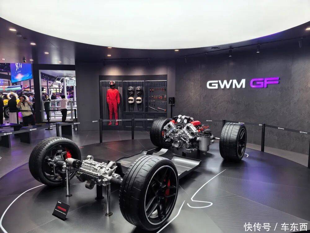 长城此次带来了一款名为“GWM GF”的超跑底盘。根据车东西在现场与工作人员交流时得知,该底盘搭载了长城4.0T V8发动机,采用中置发动机架构,可以用来打造超跑车型和赛车车型。