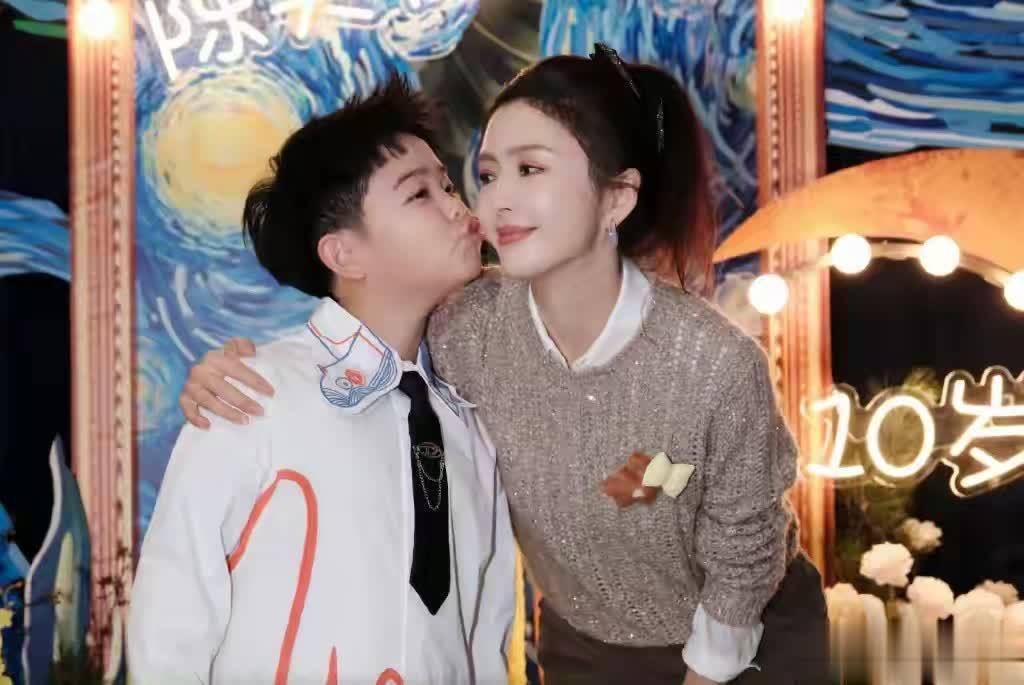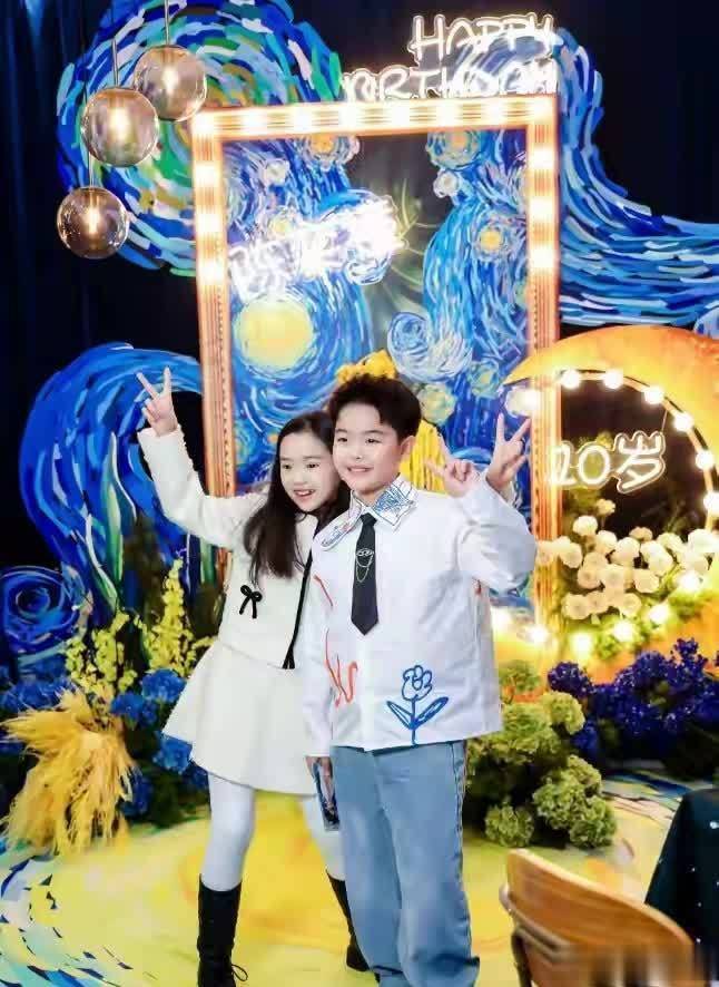 最让人挪不开眼的还是小寿星朵朵,这哪儿是长大啊,简直是陈思诚的复制粘贴!10岁的他已经长成挺拔小少年,深邃眉眼、高挺鼻梁跟爸爸一模一样,连笑起来的弧度都丝毫不差,妥妥的“迷你版陈思诚”,网友都调侃“基因这东西是真没跑偏”!